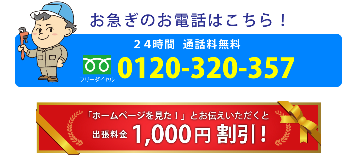 通話料無料のフリーダイヤルにお気軽にお電話ください。修理・工事の専門家が直接対応いたします。